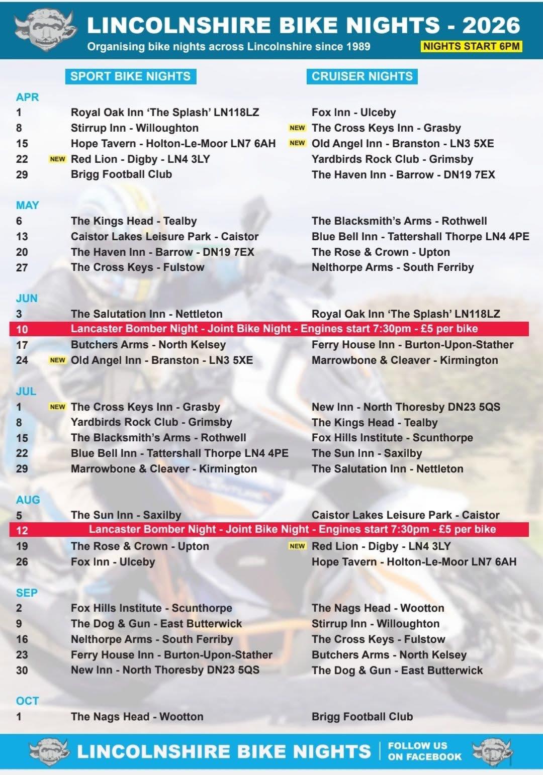| 10 June | East Kirkby Bike Night | PE23 4DE. | 17.00 - 21.00 |