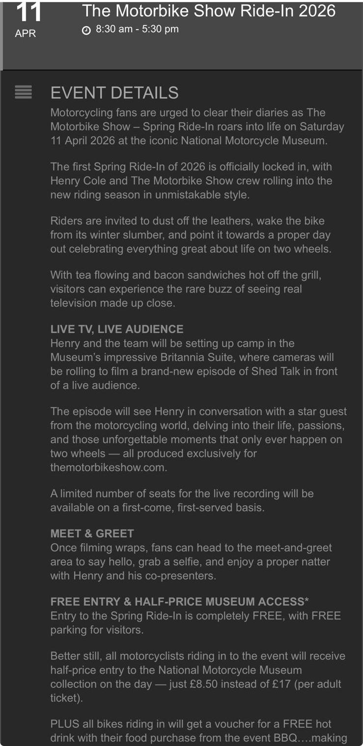 Motorbike Ride-in 2026 - Meet at Newark Esso Garage | NG24 2DF | 9.30 for 10.00 start |
