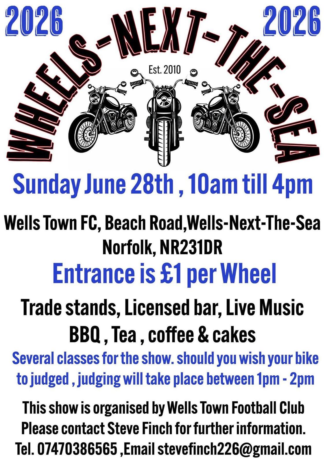 | 28 June | Wheels -next-the-Sea | NR23 1DR | 10.00 - 16.00 |